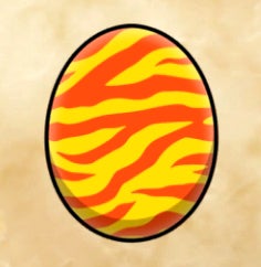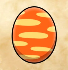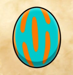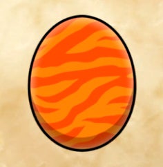Rathalos – Orange egg with dark blue connected stripes.