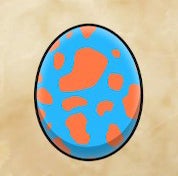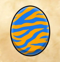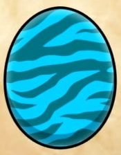Zamtrios – Blue egg with orange stripes.
