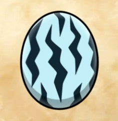 Zinogre – Light turquoise egg with yellow jagged stripes (like lightning bolts).