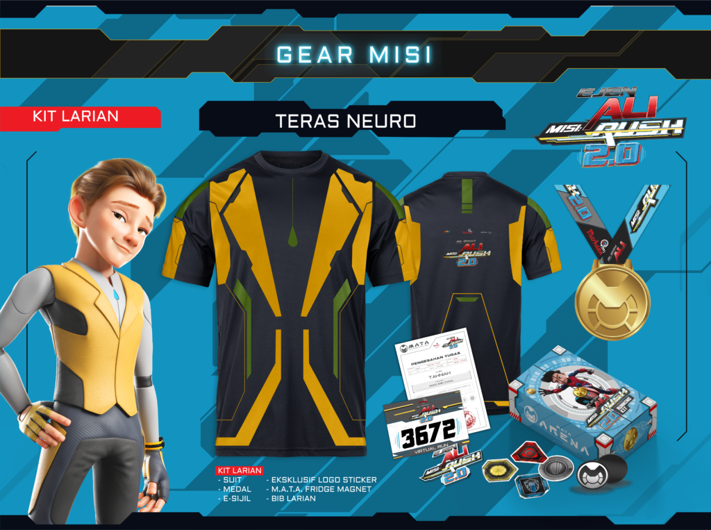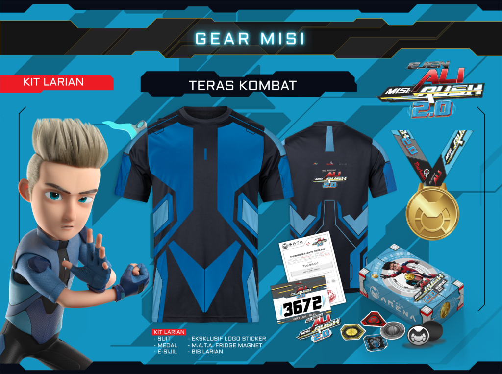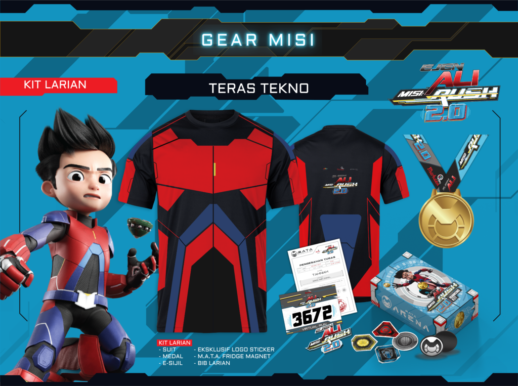A collaboration between Primeworks Studios, WAU Animation and Marhaen.my, this first Virtual Run for Ejen Ali presents a unique twist on the concept. In line with the MATA Arena storyline featured in Ejen Ali Season 3 (now streaming on Disney+ Hotstar), Ejen Ali is calling up all fans to sign up to support their favourite Teras; with a choice of Neuro, Inviso, Tekno and Kombat. Each Teras comes with your choice of running kit, containing a Running Jersey designed based on a MATA Ejen uniform, Medal & Lanyard, Sticker Pack, Fridge Magnet and E certificate.