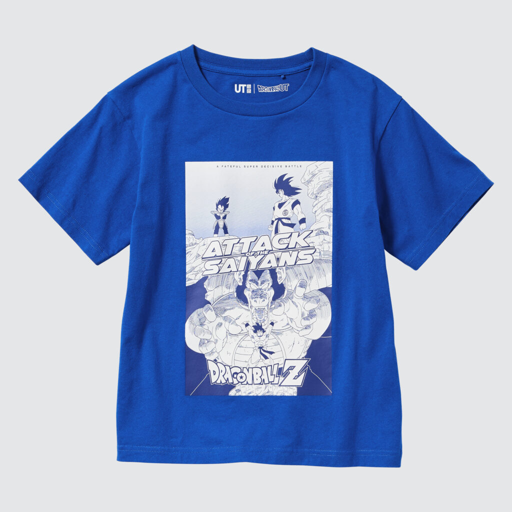 Moreover, the UNIQLO Dragon Ball collection let parents and children style in matching outfits or just showcase their favourite scenes together. Definitely a thumbs up on the cool parent department. Let’s unwrap all the designs in the “History of Dragon Ball” UNIQLO UT collection starting from the kids’ lineup to men.