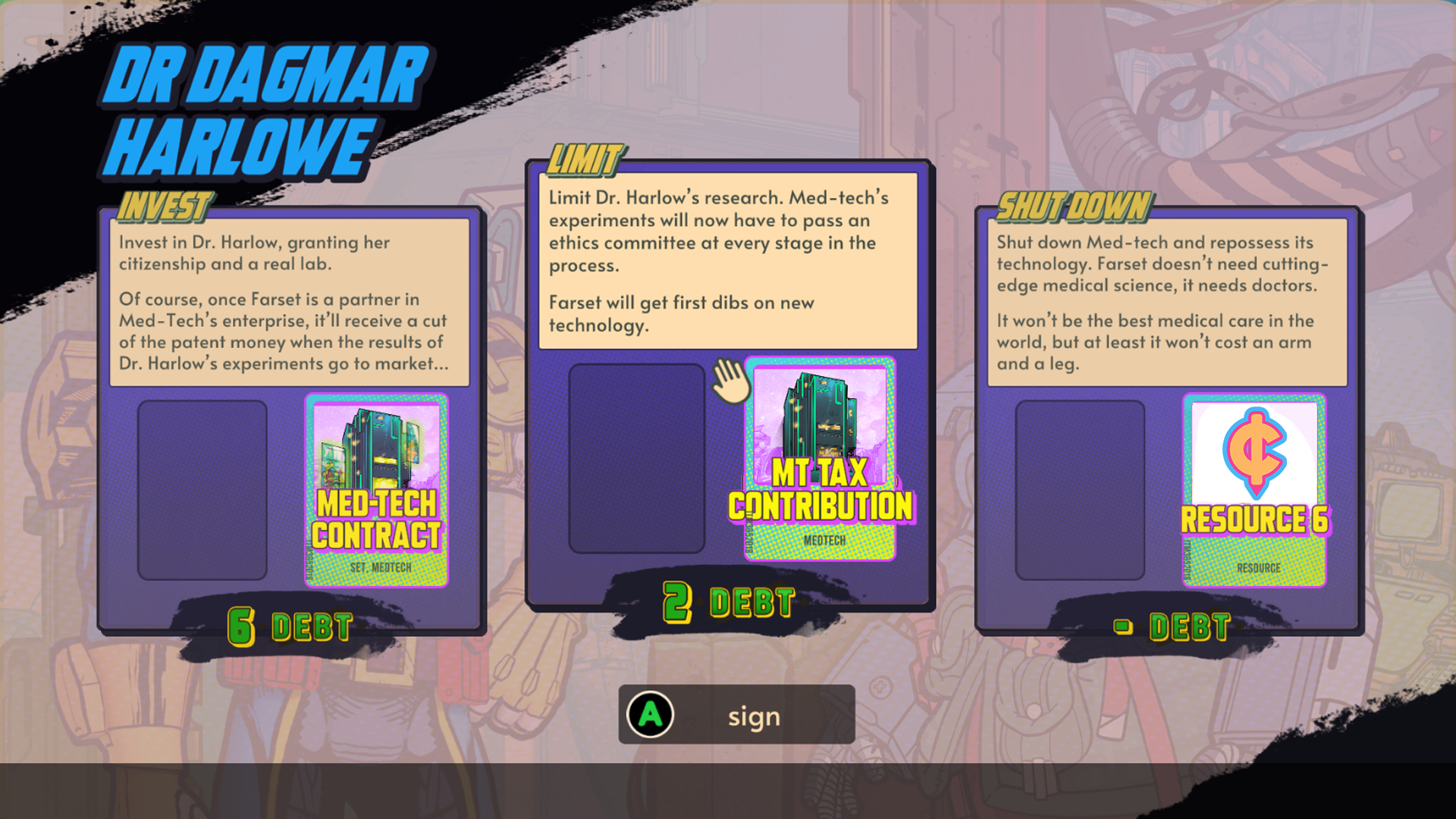 • Strategy and Morality – Negotiate with targets to affect the economy, narrative and gameplay on each run. Every decision challenges players to choose between sci-fi metaphors for socialist vs capitalist economic policies.