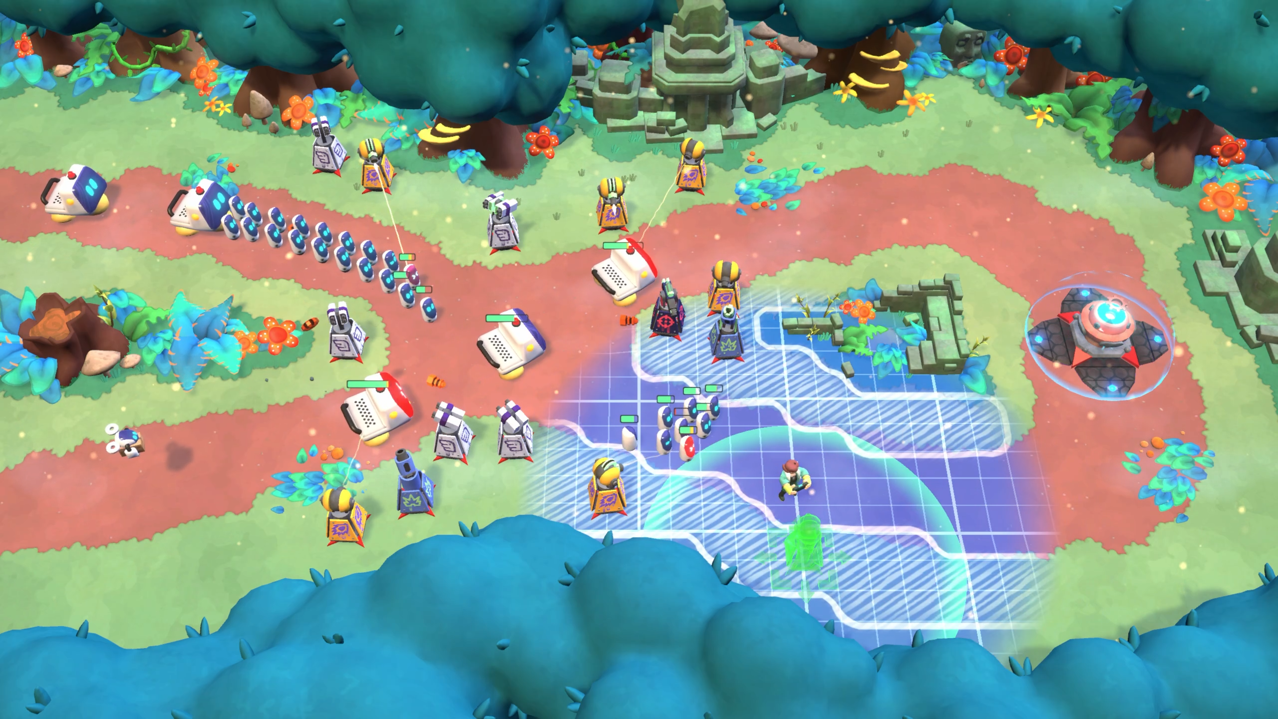 There are 8 vibrant and colourful biomes spread across 32 levels where players will face various hazards such as turrets overheating in the Volcano biome or lethal mutant plants in the overgrown jungle. Players will be able to unlock gadgets, build upgradeable turrets, and engage in exciting battles with giant hammers to prepare for combat.