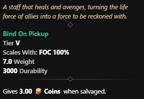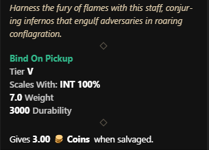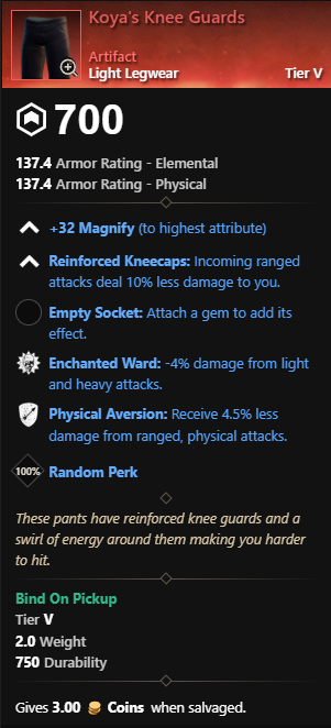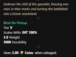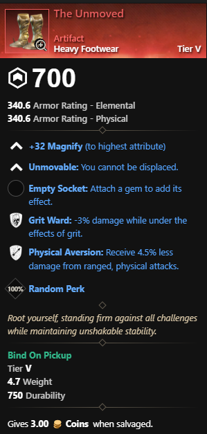 This artifact isn’t new but they did change the perks on it. So we’ll count it as new 😉 The Fire Staff drops in the Empyrean Forge dungeon in Great Cleave. Commander Marius(Level 62) drops the fire staff. Keep in mind the mob scales to 70 in mutated dungeons. He takes 15% more Slash damage and 20% more Ice damage.
