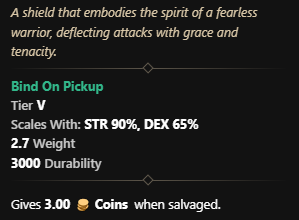 The shield is a drop from the Tribunal Ice Mammoth at Tribunal in Elysian Wilds. These mammoths takes 20% more Thrust damage and 15% more Fire damage.