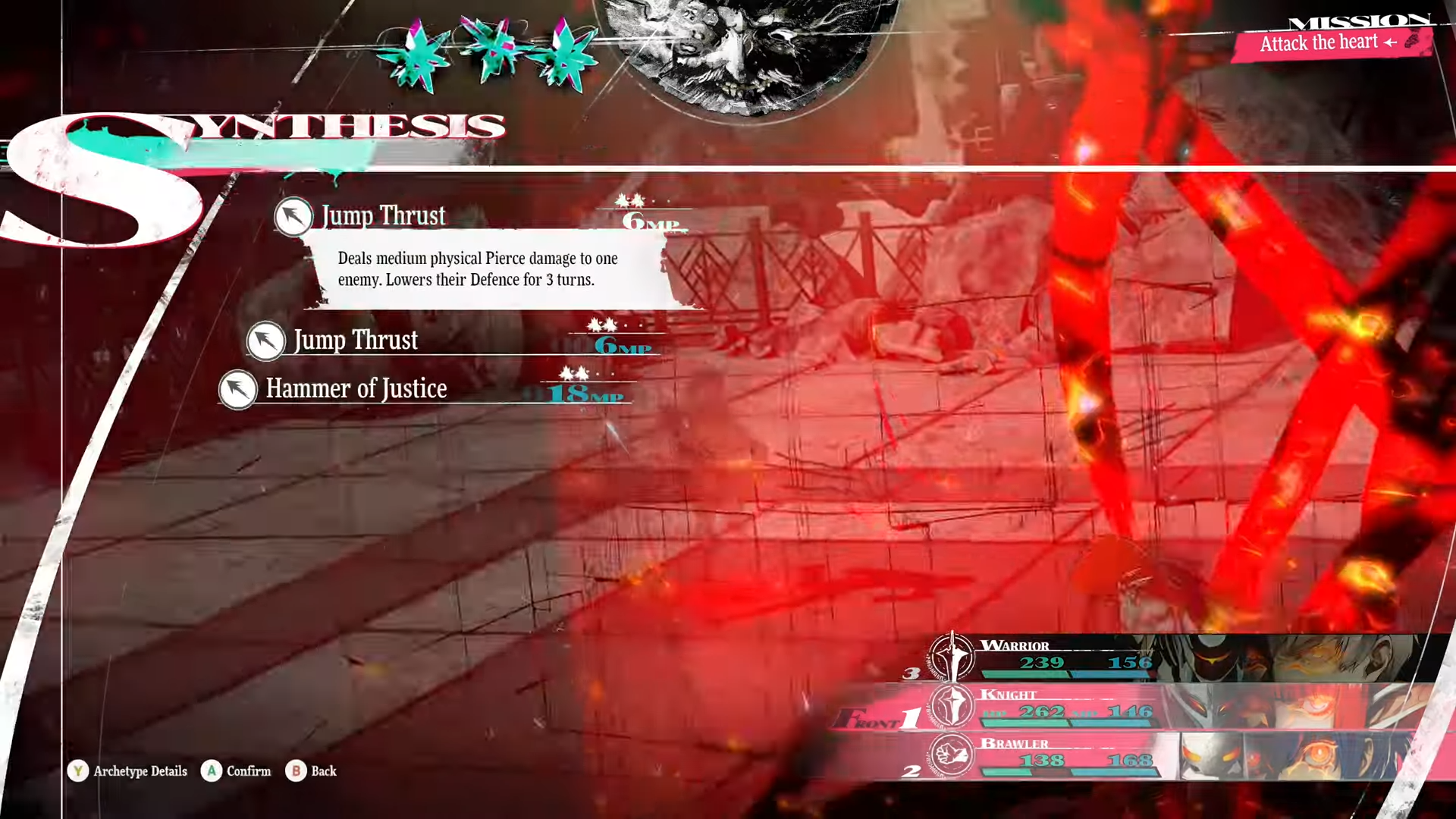 Your main character gains access to an ability called Synthesis, where you and your team combine and turn into a badass mecha knight and deal more damage in armoured form. We’ll find out more about this later.