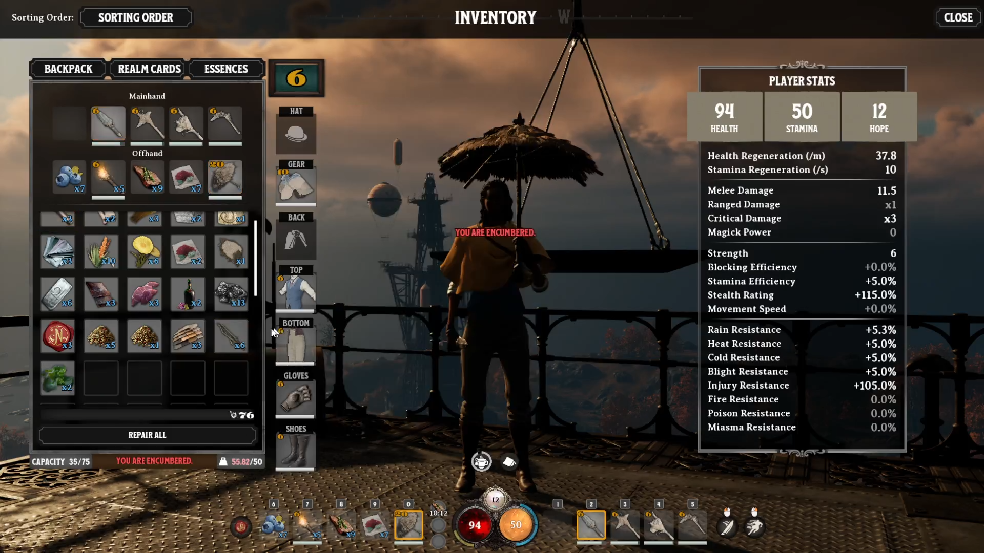 At the very least, there are some NPCs in realms who are happy to help you with your daily farm life. In my playthrough, I ran into Chester, an NPC who needed my help in building his own shelter. In return, I could recruit him to help me on my journey. he’ll help me fend off the while creatures, and carry some extra weight so I won’t always be over-encumbered like the loot goblin I am.