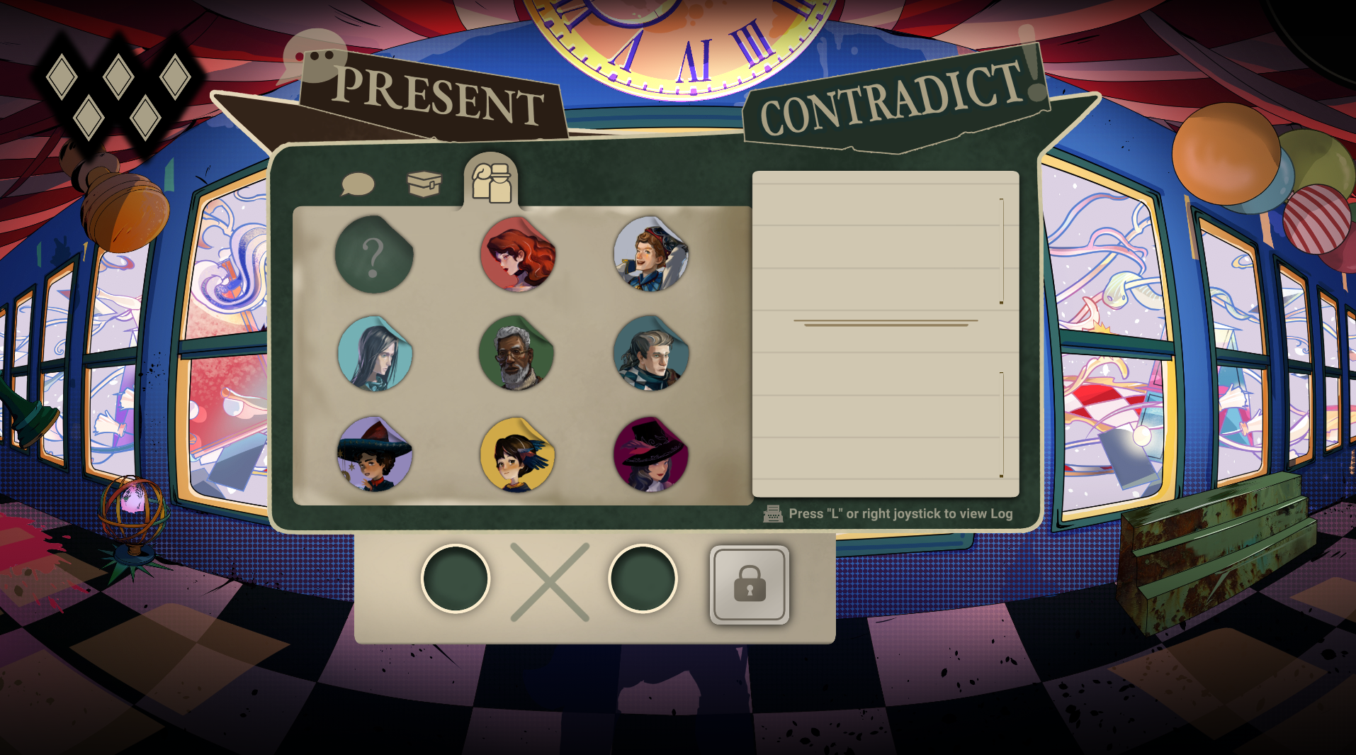 You can always check on your collection regardless of which character you are on. However, each collection is different, since you’re asking different questions when you’re on the magician and detective. It’s a pretty neat feature considering I am forgetful and I sometimes get lost in what I want to ask. One thing that’s also a great feature is the Contradictions feature, in which you get to contradict certain statements given by the characters in the game. I certainly had a tough time with this since I’ve never had the brain for piecing things together.