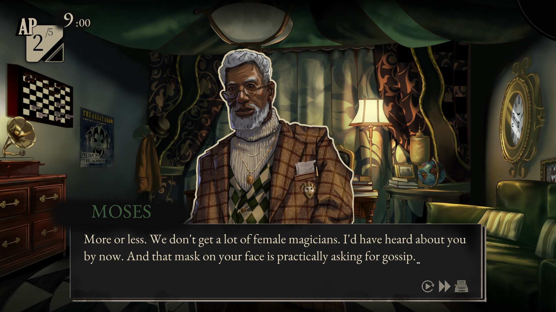 Here’s what’s I find great, you get to play two characters, Jackie, a magician, who is friends with the missing magician Hattie, and a Detective called Detective Jones who has come to investigate what’s happened to Hattie. Jackie receives a weird note from Hattie early in the week telling her to head to the circus and replace her if anything goes wrong. The show must go on, right?
