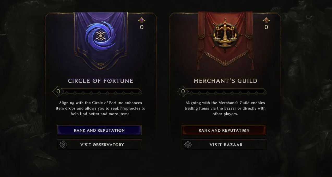 Another unique thing about Last Epoch is its trading system. To trade with someone else, you will need to join the Merchant’s Guild item faction or gather resonance. The Guilds is one of the latest feature to come with Last Epoch’s release. There are two, the Merchant’s which has a little hub where players can sell or buy items from other players. This includes trading from player-to-player of course! The other guild is called the Circle of Fortune. Unlike the Merchant’s Guild, this one gives you the chance to earn higher-quality loot easier, BUT you can’t trade. You’ll have to grind some reputation and unlock different ways to trade which is pretty cool. Not only that, you can swap freely between each faction to reap its benefits, and you won’t lose any progress on your rank nor reputation.