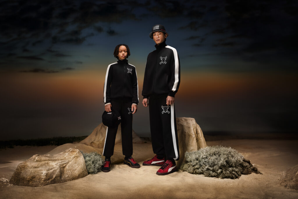 Following Luffy’s quest to become the King of the pirates, the globally popular anime is depicted through graphic elements like pirate flags, as well as scenes and characters from the show that are used across T-shirts, Hoodies, and PUMA’s T7 tracksuit. Selected pieces feature PUMA’s wordmark, cleverly mixed with the One Piece logo. Bringing the collaboration’s story to life, the PUMA x One Piece accessories include the adventure-ready Backpack and Bucket Hat.