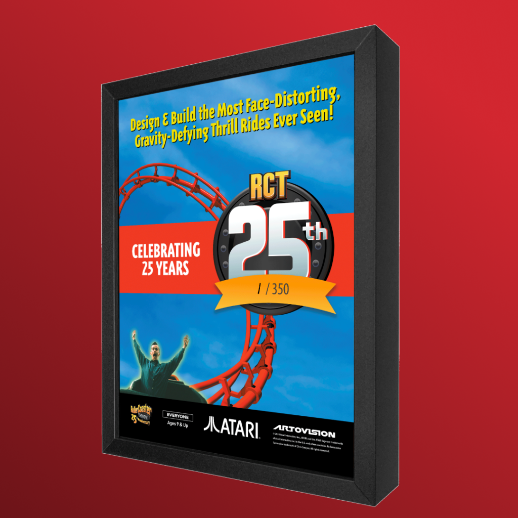 To mark the 25th Anniversary of RollerCoaster Tycoon, Atari is offering a special treat: a limited edition of shadowbox srt pieces, showcasing the game’s original box cover, each piece personally signed by the creator, Chris Sawyer. Act fast, as there are only 350 numbered and signed copies available, priced at US$199 each.