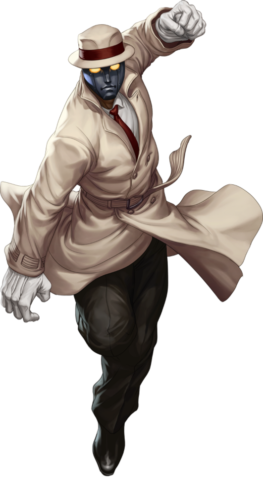 G is a Street Fighter 5 fighter who has “geokinesis” powers and is a self-proclaimed President of the Earth. He also has dash punches of various properties, but has projectiles. Many fans have brought up similarities between Q and G; in fact, the latter has an alternate outfit which is similar to Q’s default masked getup.