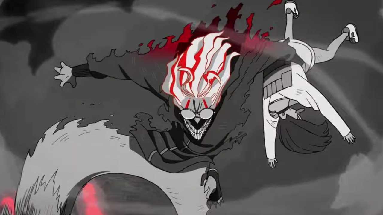 Science SARU, best known for projects like Devilman Crybaby and Scott Pilgrim Takes Off, has a reputation for creating visually striking shows, and they’ve outdone themselves here. One of the standout aspects of the adaptation is how it uses colour to enhance the storytelling. The show isn’t just content with bright, eye-popping animation—each battle, and each tense moment is drenched in a palette that reflects the emotions at play. From eerie blues and purples that signal impending doom to bursts of vibrant red and gold in the heat of battle, the colour choices add an extra layer of intensity to every scene. Episode 2, for example, plays with stark black and white during a fight at Momo’s home, heightening the sense of danger and doom in an almost cinematic way.