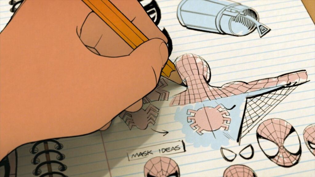 As seen in Peter’s sketches. It’s logical that a broke kid like him won’t be able to make a suit like that yet.