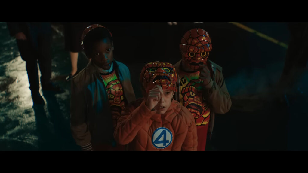 From the strange retro-futuristic technology of this Earth to the Fantastic Four already being established heroes (as evident from the kids wearing The Thing masks), it’s clear that this movie is not set on Earth-616 / Earth-199999 from the MCU.