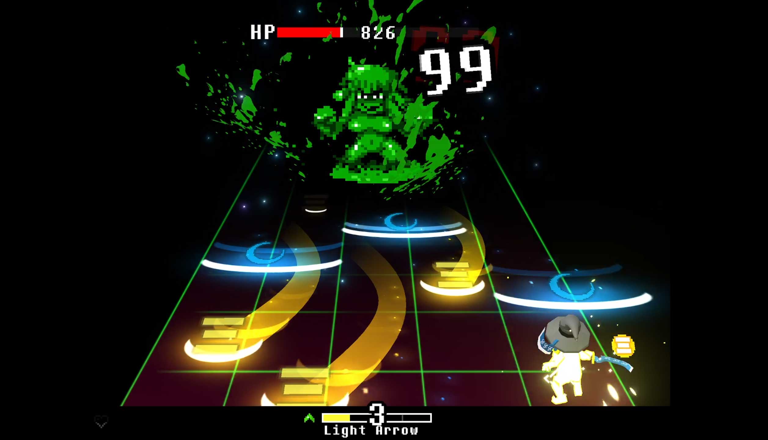 Yes, you heard me right: this retro-styled role-playing game lets you deal with combat with the power of music. If you know how Guitar Hero and other rhythm games work, you can figure out Everhood 2’s combat. When you initiate combat with enemies, you’ll be at the bottom of the lane where you can move your coloured Soul hero left or right, or even jump. When you see a coloured lit symbol heading your way, you can absorb it with the right trigger buttons. Store a minimum of three symbols of the same colour, and you can unleash your coloured attack with the left trigger buttons. When you get hit, you lose your charges and have to accumulate them again.
