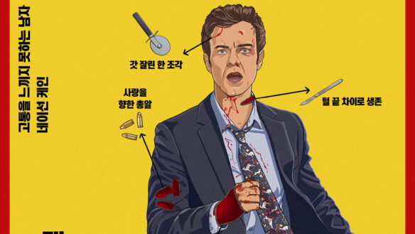 Jack Quaid plays Nathan Caine (heh), a 30-year old bank manager who is incapable of feeling physical pain throughout his life. When the girl of his dreams at his workplace, Sherry (Amber Midthunder of Prey), ends up getting kidnapped in a bank heist in Caine’s branch, he ups and attempts to rescue her, throwing caution in the wind. He of course uses his rare condition to his advantage, leading to inventive and creative moments that will gross you out while also making you laugh.