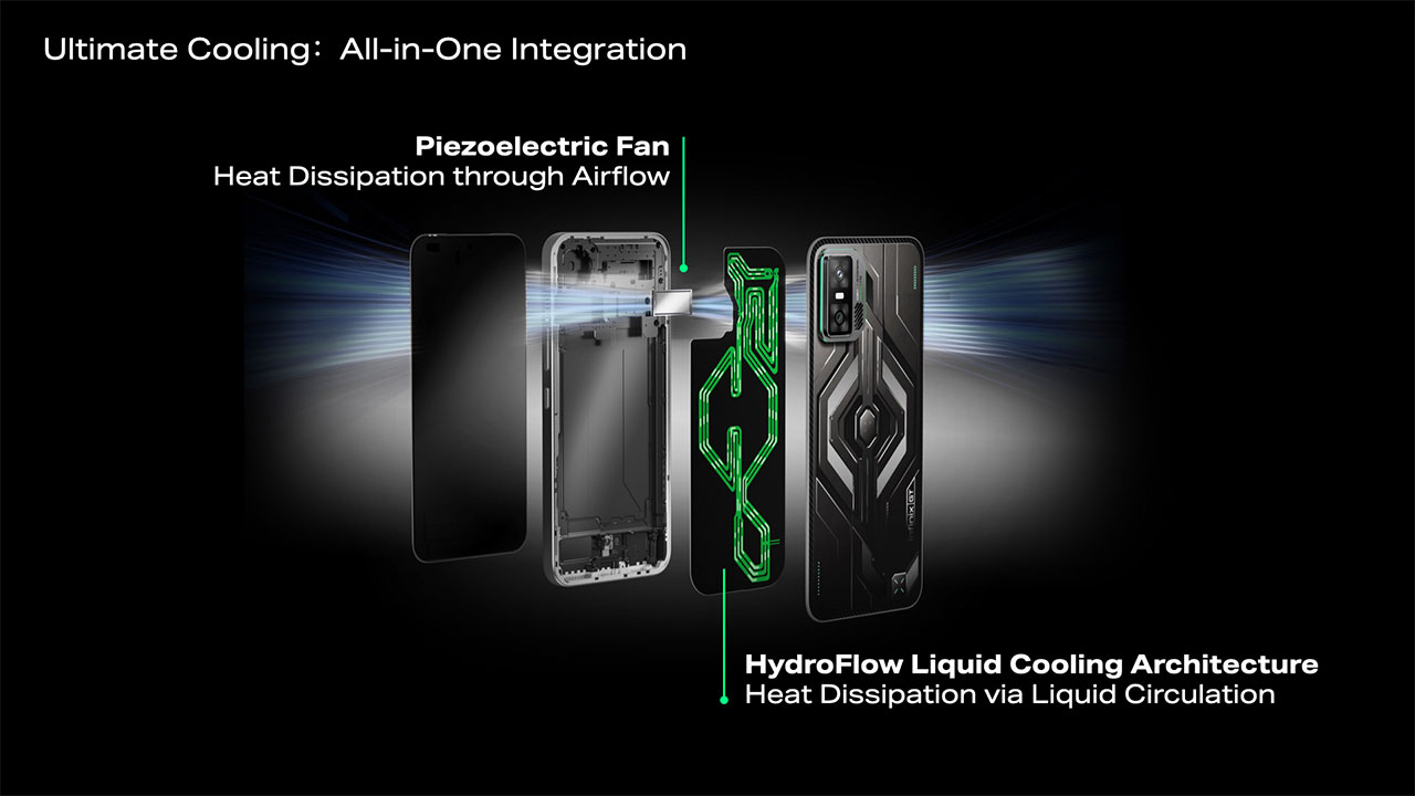 Integrating the HydroFlow Liquid Cooling Architecture with the Piezoelectric Fan, Infinix delivers an all-in-one integrated system that combines liquid and active air cooling to provide more stable performance and a cooler tactile experience. Looking ahead, Infinix continues to explore next-generation cooling solutions, including a Full-Chamber Immersive Cooling solution, where liquid directly contacts key components for rapid heat dissipation, highlighting its ambition to push cooling technology further for extreme performance.