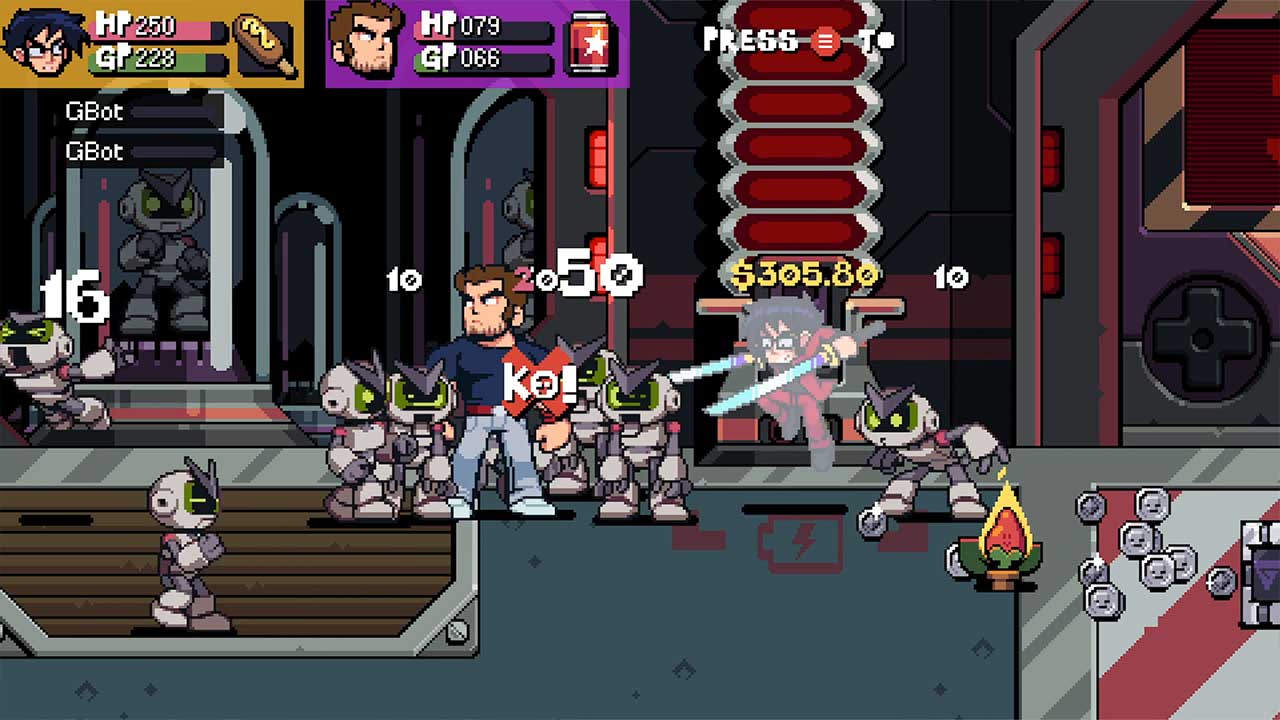 Still, this beat-em-up can’t be beat quality and controls-wise. Raging Scottaholics will love this title to death just for all the nods and references, with special props to the developers for their attention to detail. Fans of beat-em-ups and gaming will find a lot to adore here, as it’s basically a revved-up role-playing beat-em-up hybrid ala River City Ransom on steroids and pop culture nod overloads.
