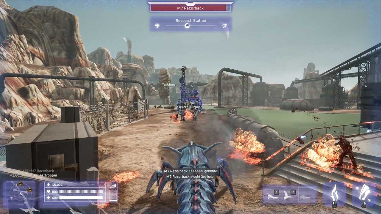 Once you’ve got your fill in playing as a human methodically, you can unleash chaos in Bug Mode. As you finish each campaign, you unlock a new Bug stage where you can play as the game’s primary antagonist, the Assassin Bug. This mode is the reverse of the Human campaign: just terrorize all three human military encampments on a map, then destroy the main base. Your Assassin Bug is fast, jumps high, and can morph between three different modes. Regular mode lets you use fast melee attacks and spring, as well as jump over short obstacles.